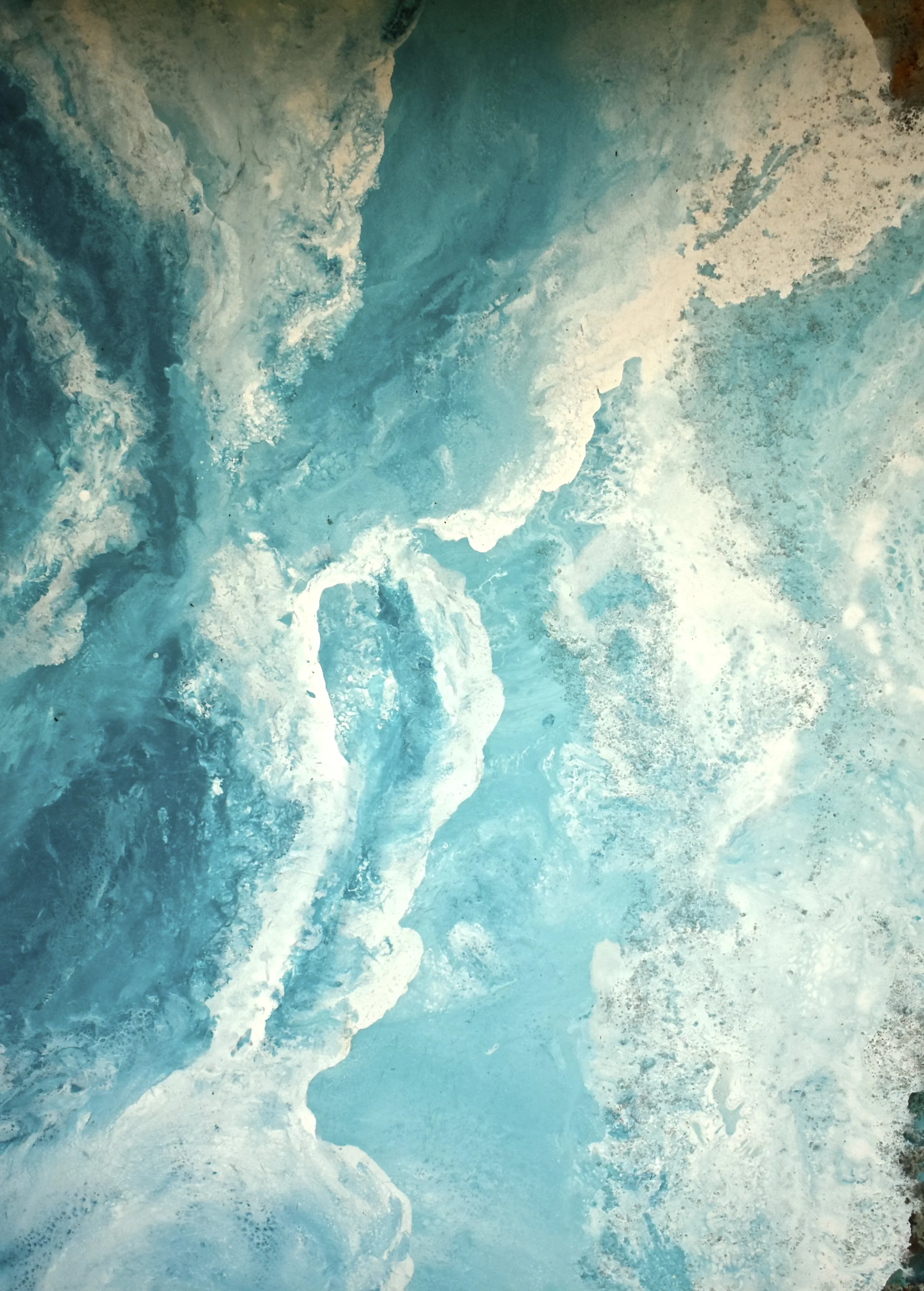 Aerial view of the ocean deep turquoise waters in the tropics.