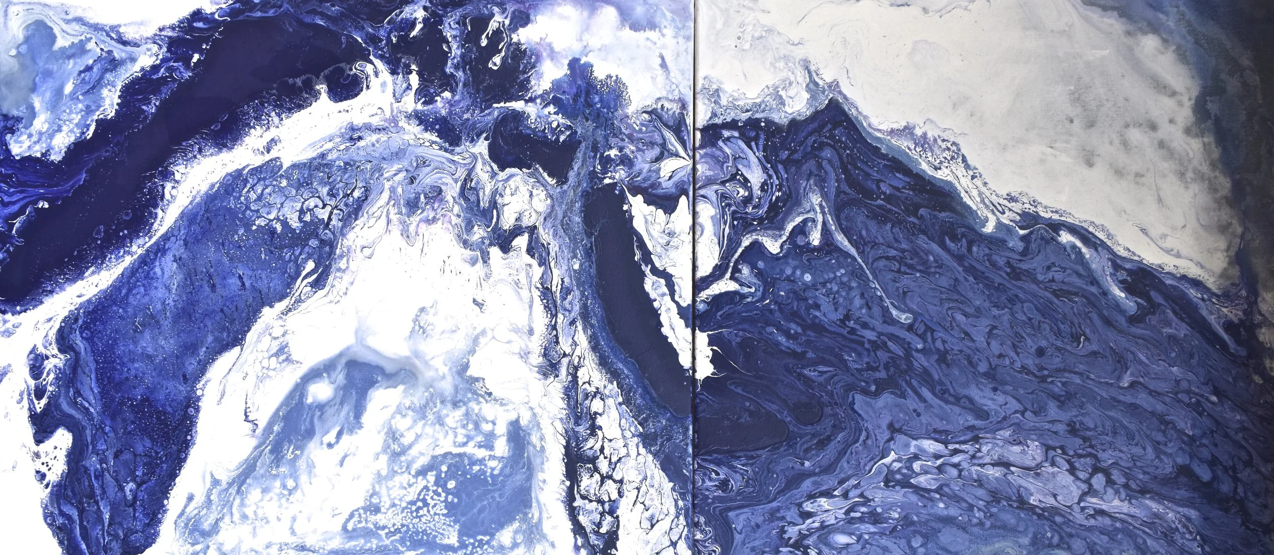 Acrylic on canvas. Visual interpretation of an aerial view of the coast of Spain.